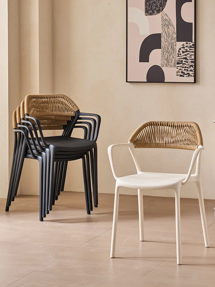 2025年新作!北欧風のラタン編み背もたれ椅子 - アウトドア・家庭用に最適!スタッキング可能で、商業利用にもぴったり。おしゃれで機能的なデザインで、どんな空間にもフィットします!