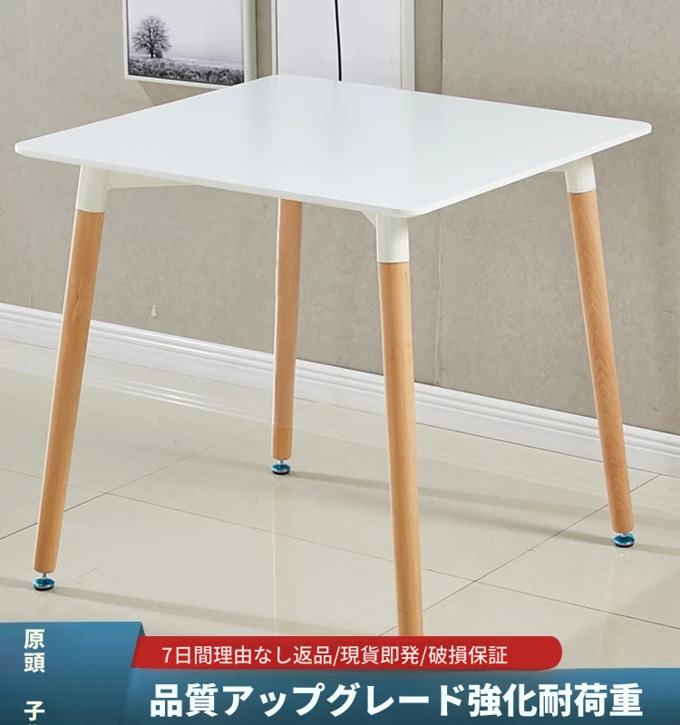北欧風のシンプルでモダンな実木ダイニングテーブル!小型住宅に最適なホワイトの四角形・円形テーブルのコンビネーション。おしゃれで使いやすく、リラックスした食卓を演出します。