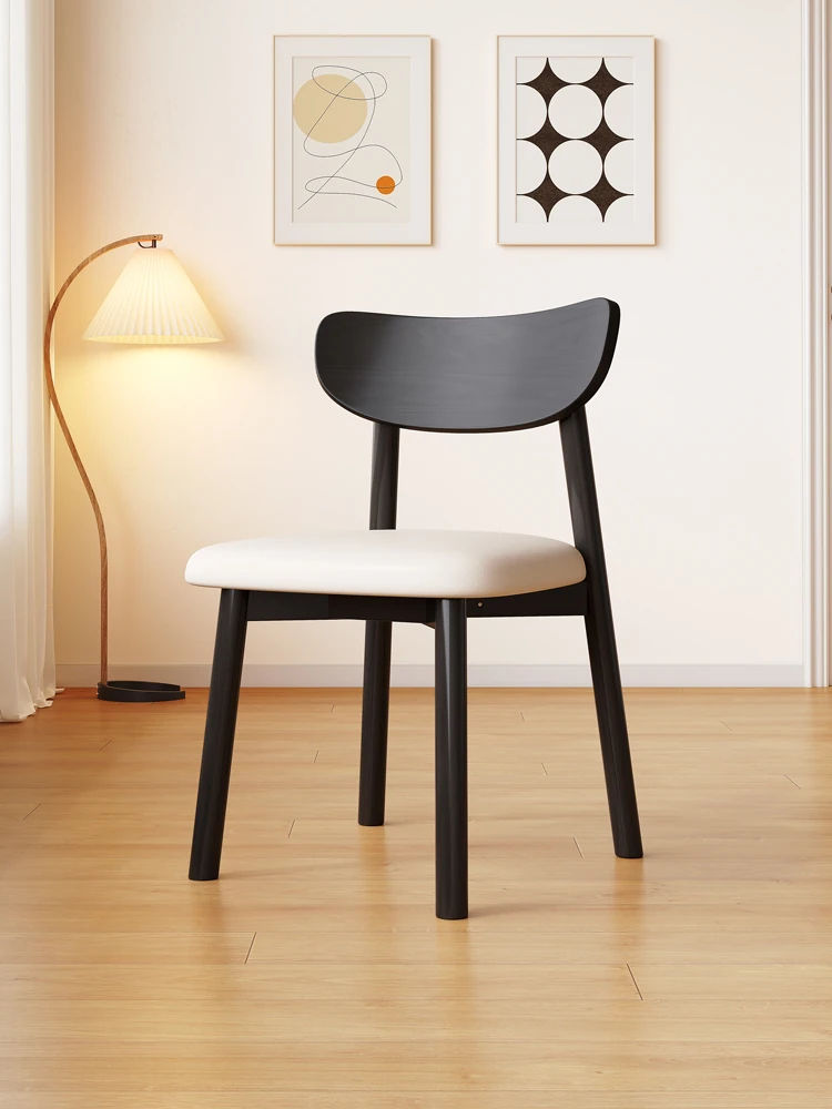 北欧スタイルの無垢材ハリネズミ椅子|レストランやホテルにぴったり!高級感漂うクリーム色の背もたれ付き、シンプルでモダンなデザインの食卓椅子。家庭用にも最適な一品です!