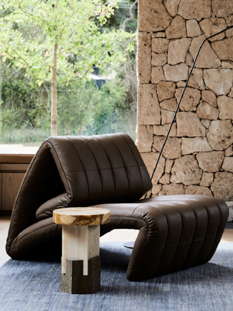 バルセロナデザインの一人掛けソファチェア - バルコニーやリビング、寝室に最適な多機能リラックスチェア。スタイリッシュなレザー仕上げで、あなたの空間を格上げします!